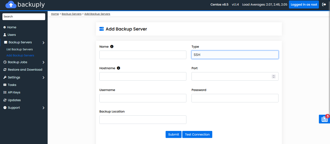 Once you fill in all the details, you can click on "Test Connection" button to verify the Backup server connection.