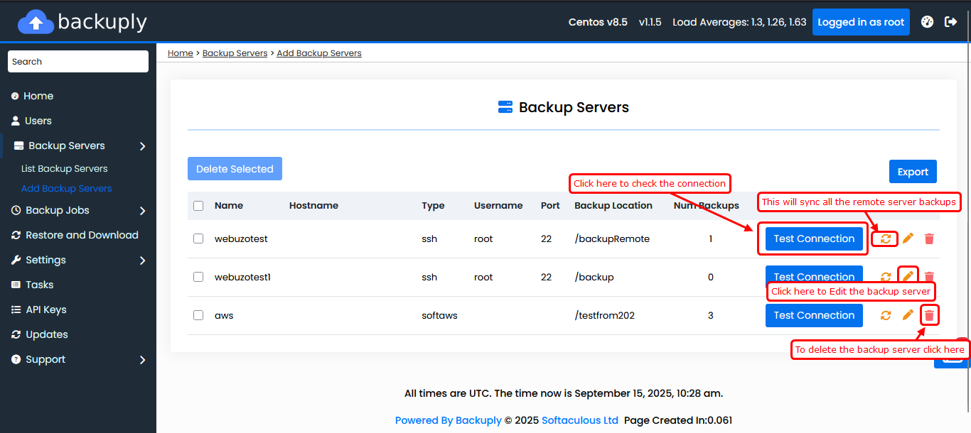 Navigate to Backuply Admin Panel > Backup Servers > List Backup Servers