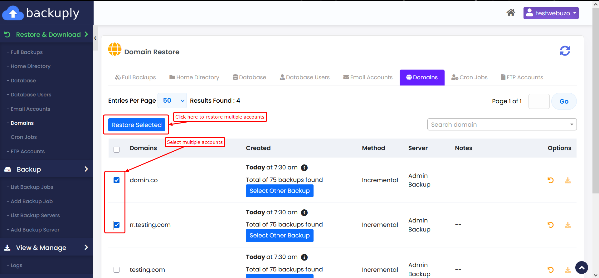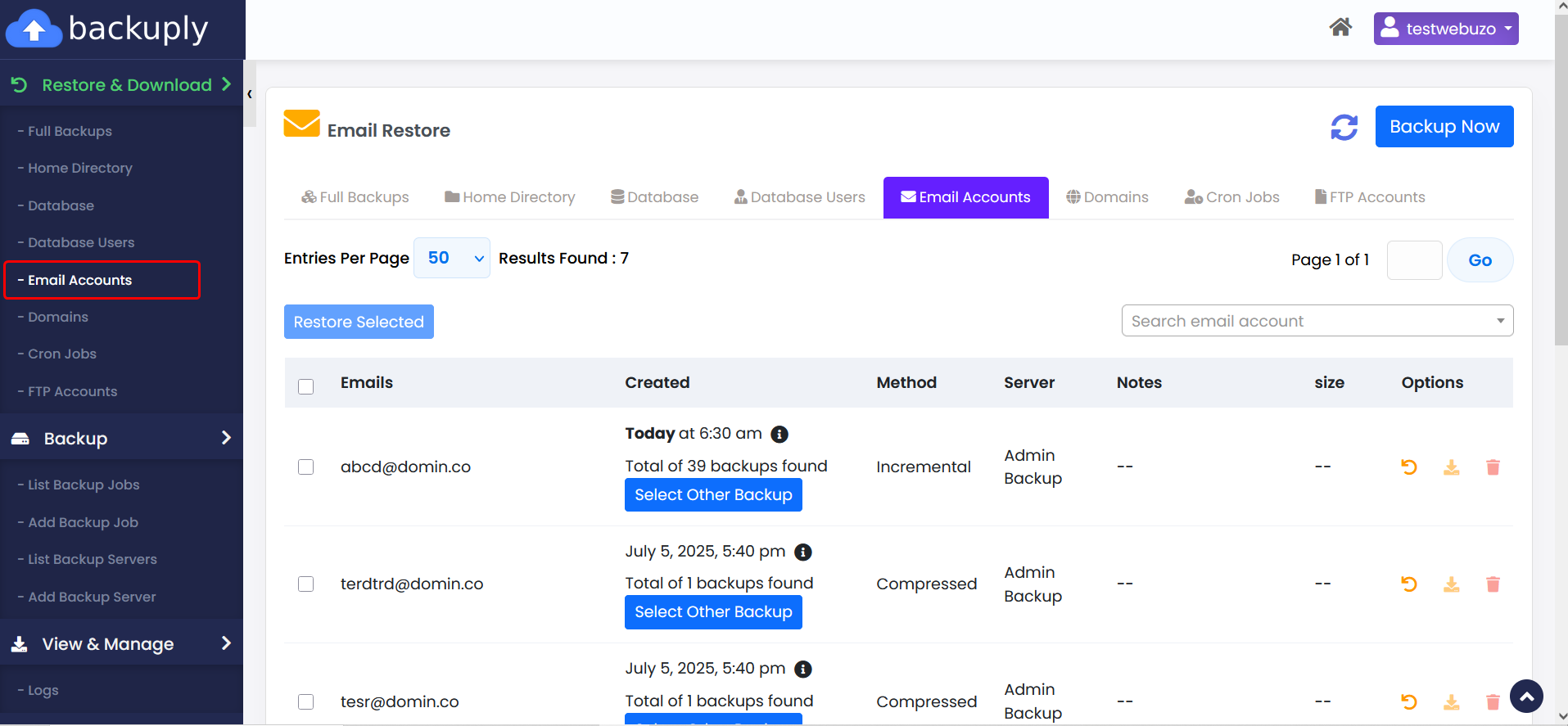 This guide will show how you can restore one or multiple Email Accounts from Backuply Enduser panel.