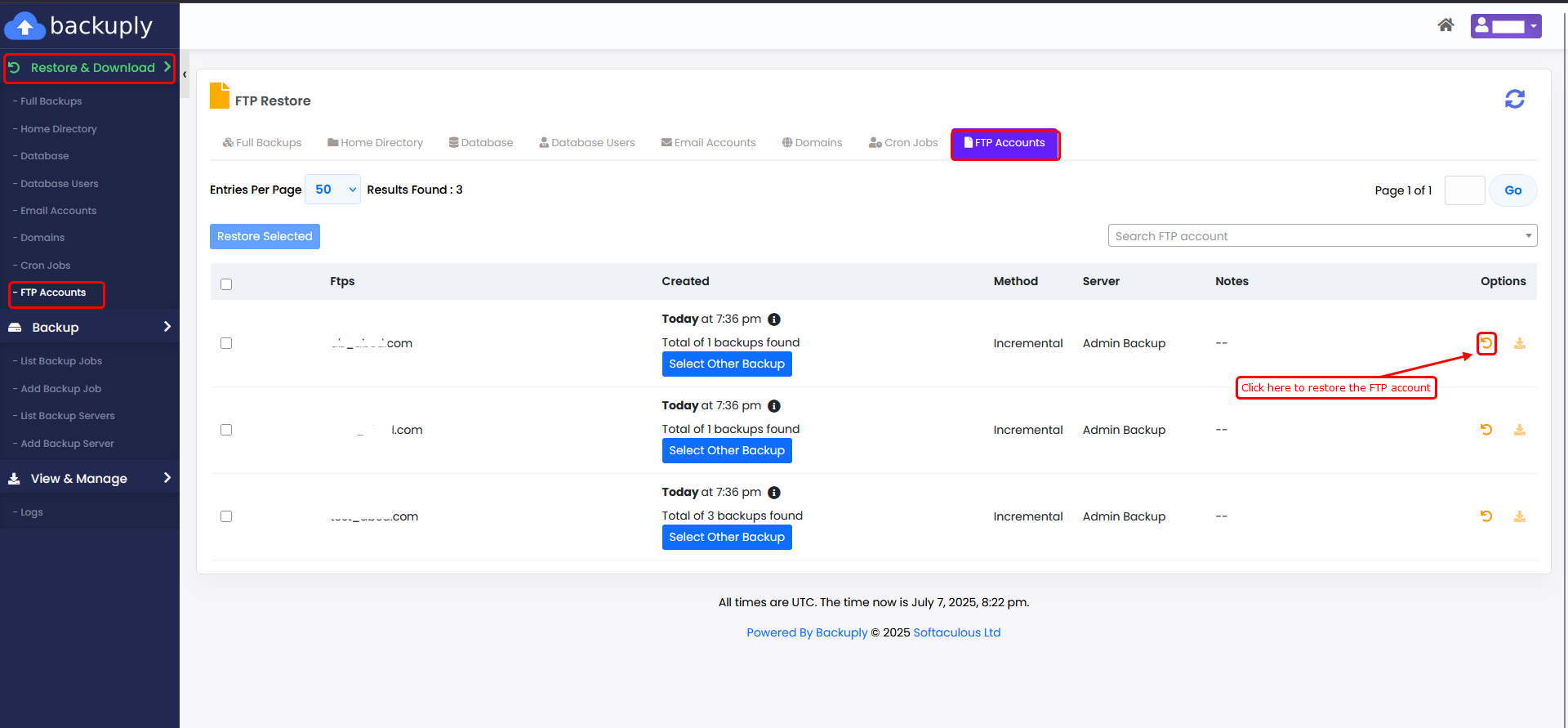 This guide will show you how to restore an FTP account in Backuply.